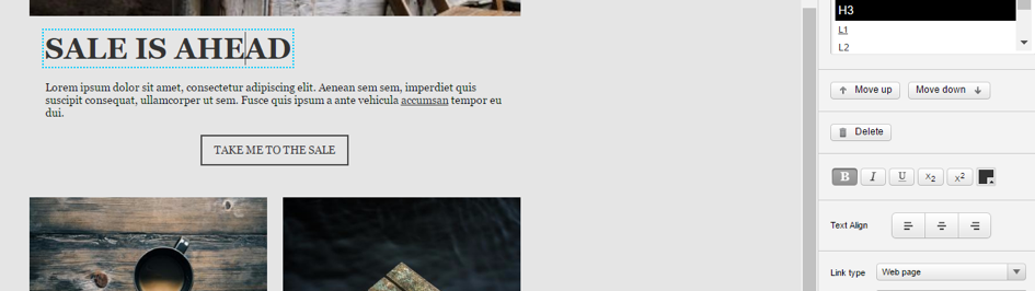 Dans la mise en page, vous pouvez supprimer, copier et insérer différents blocs.